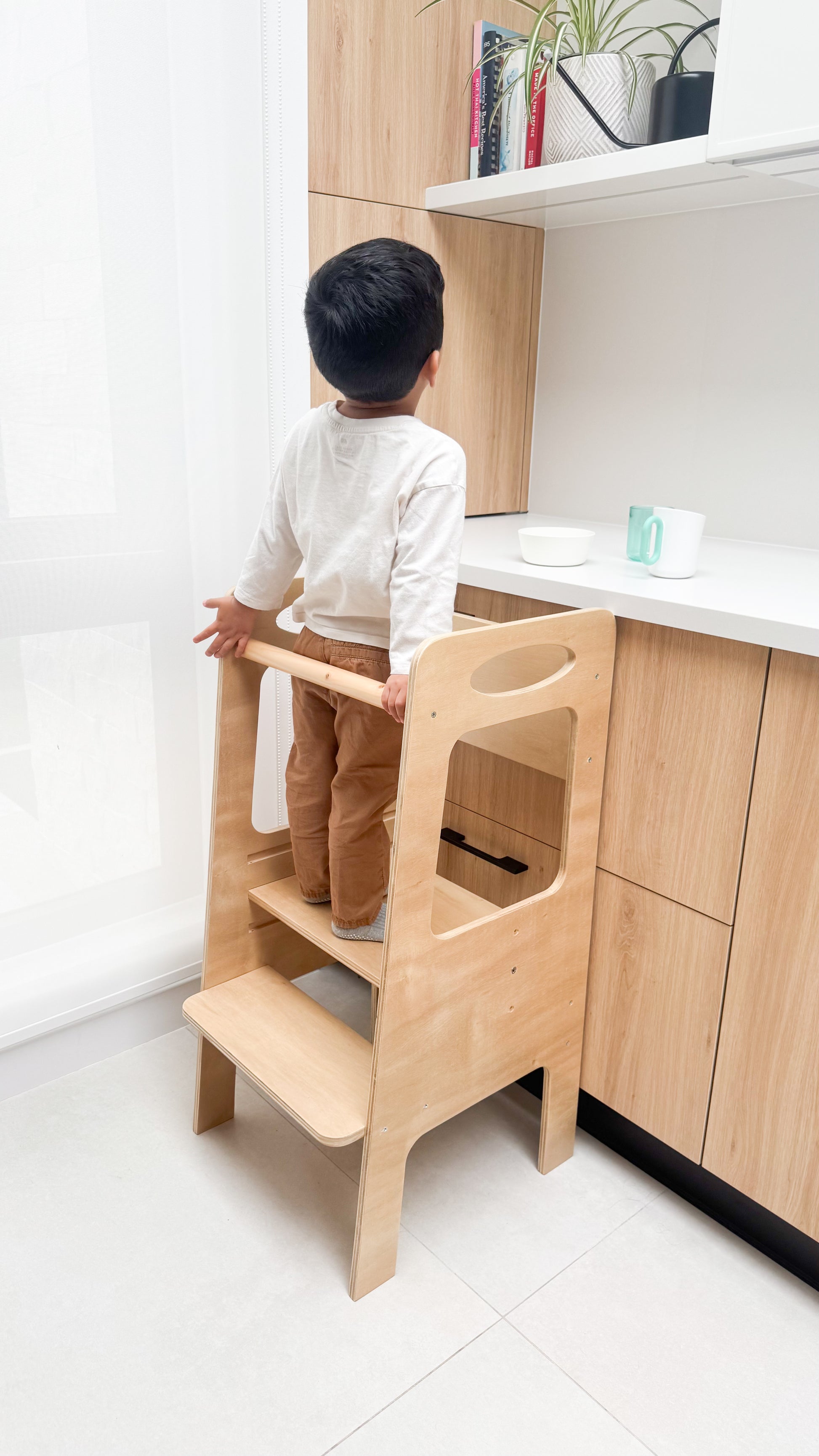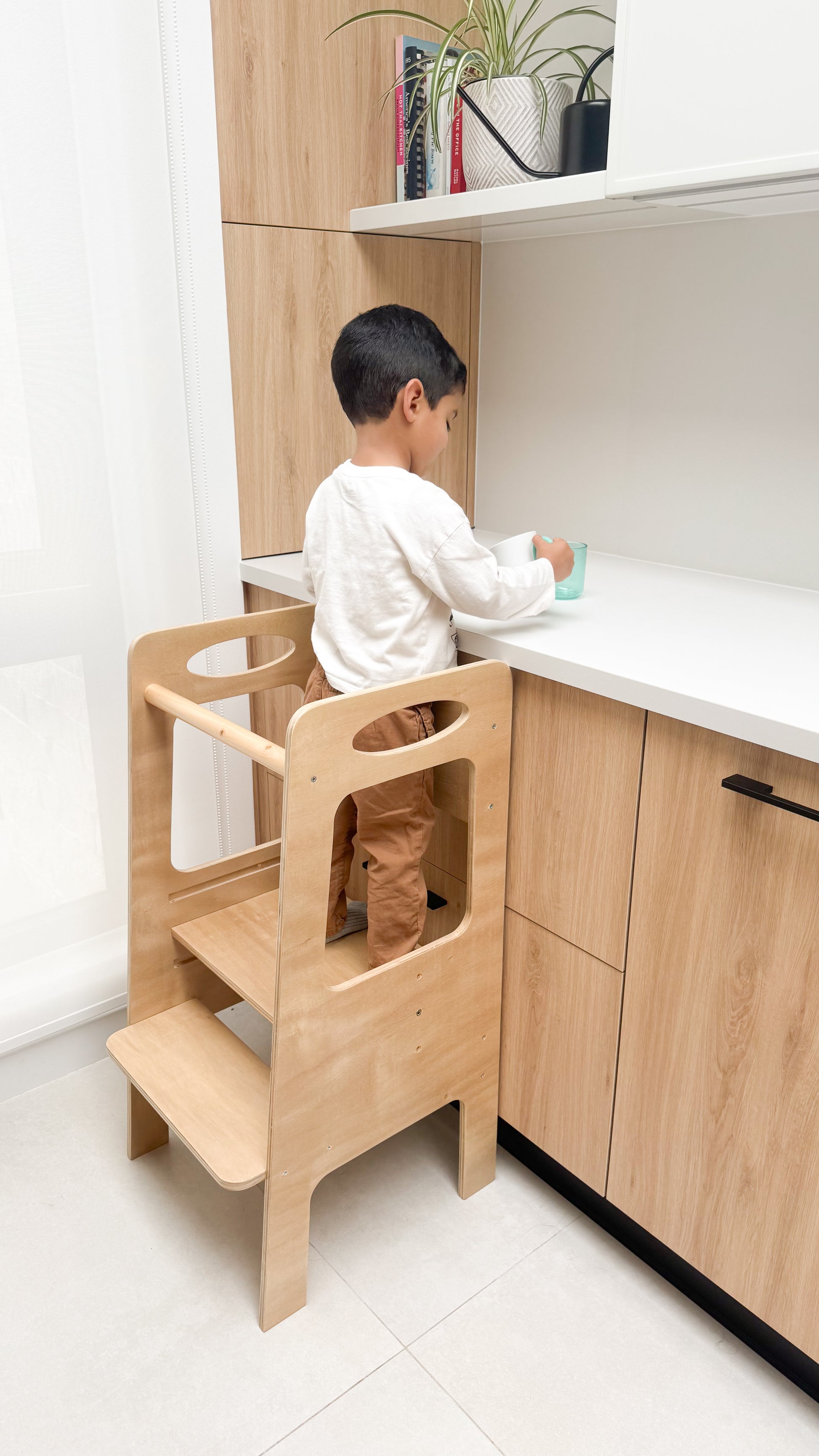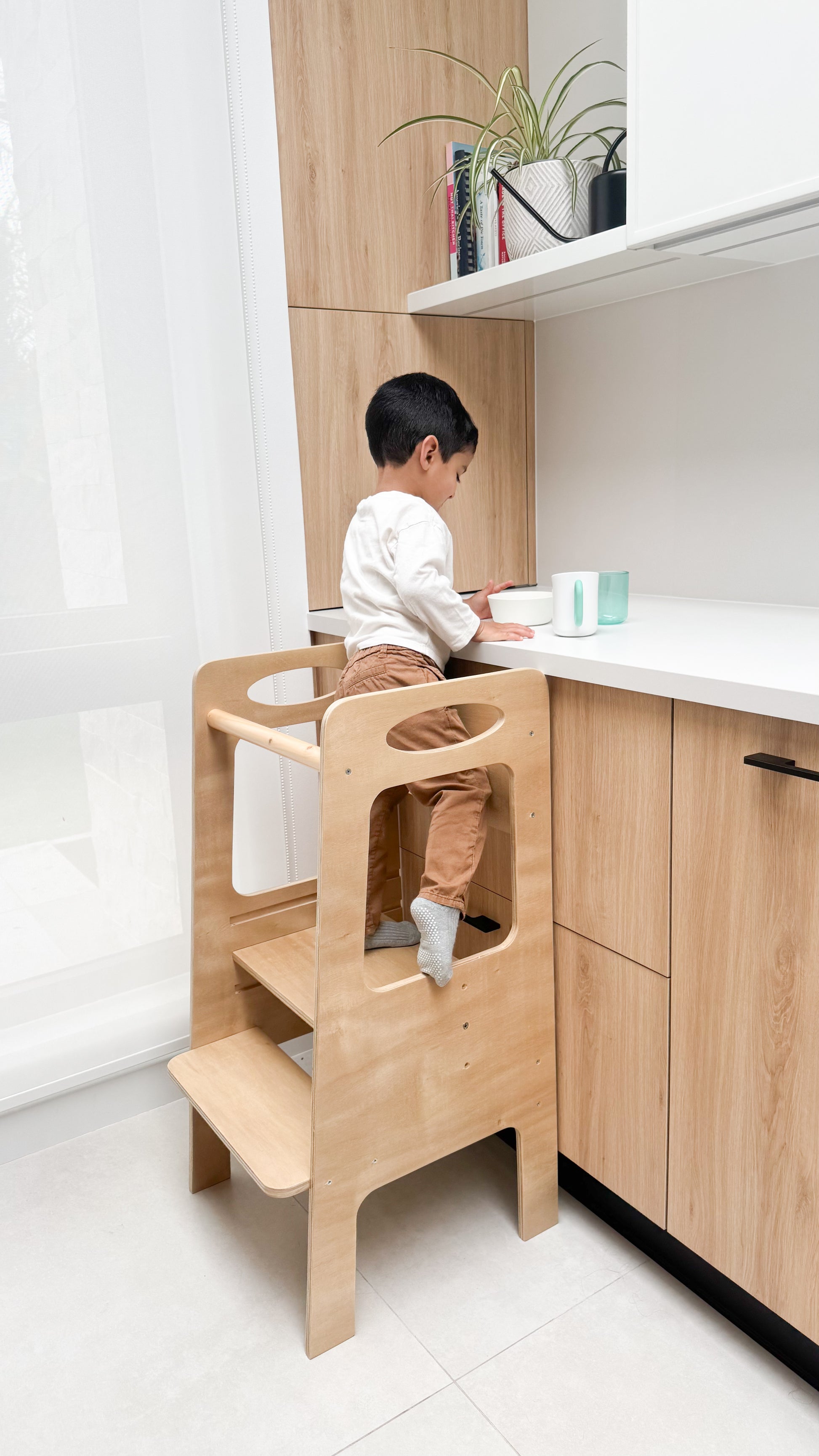 Acompaña a tu pequeño en sus descubrimientos diarios con nuestra torre de aprendizaje. Diseñada para que los niños y niñas puedan participar de manera segura en actividades como cocinar, lavarse las manos o explorar nuevas tareas junto a los adultos.
